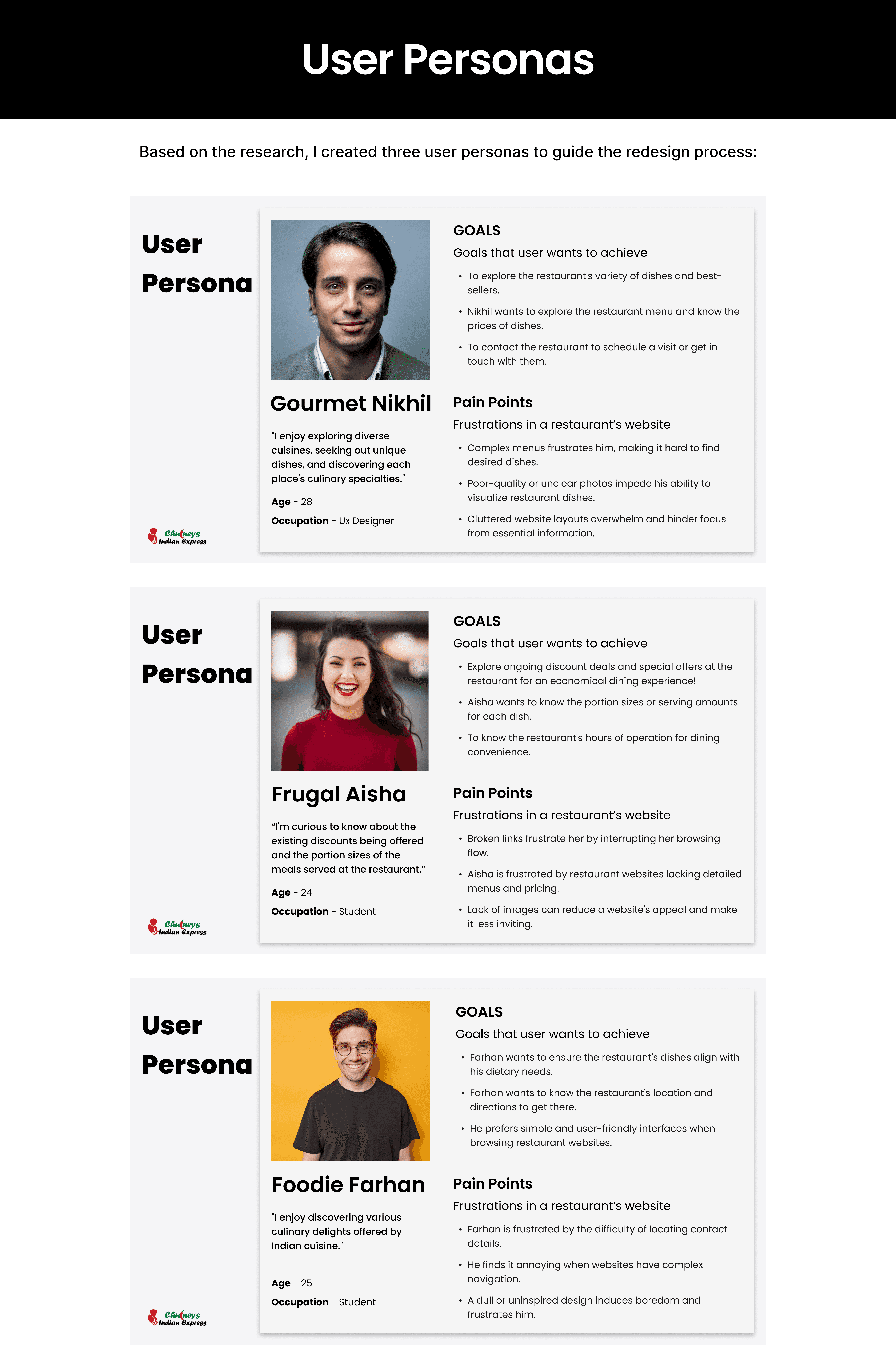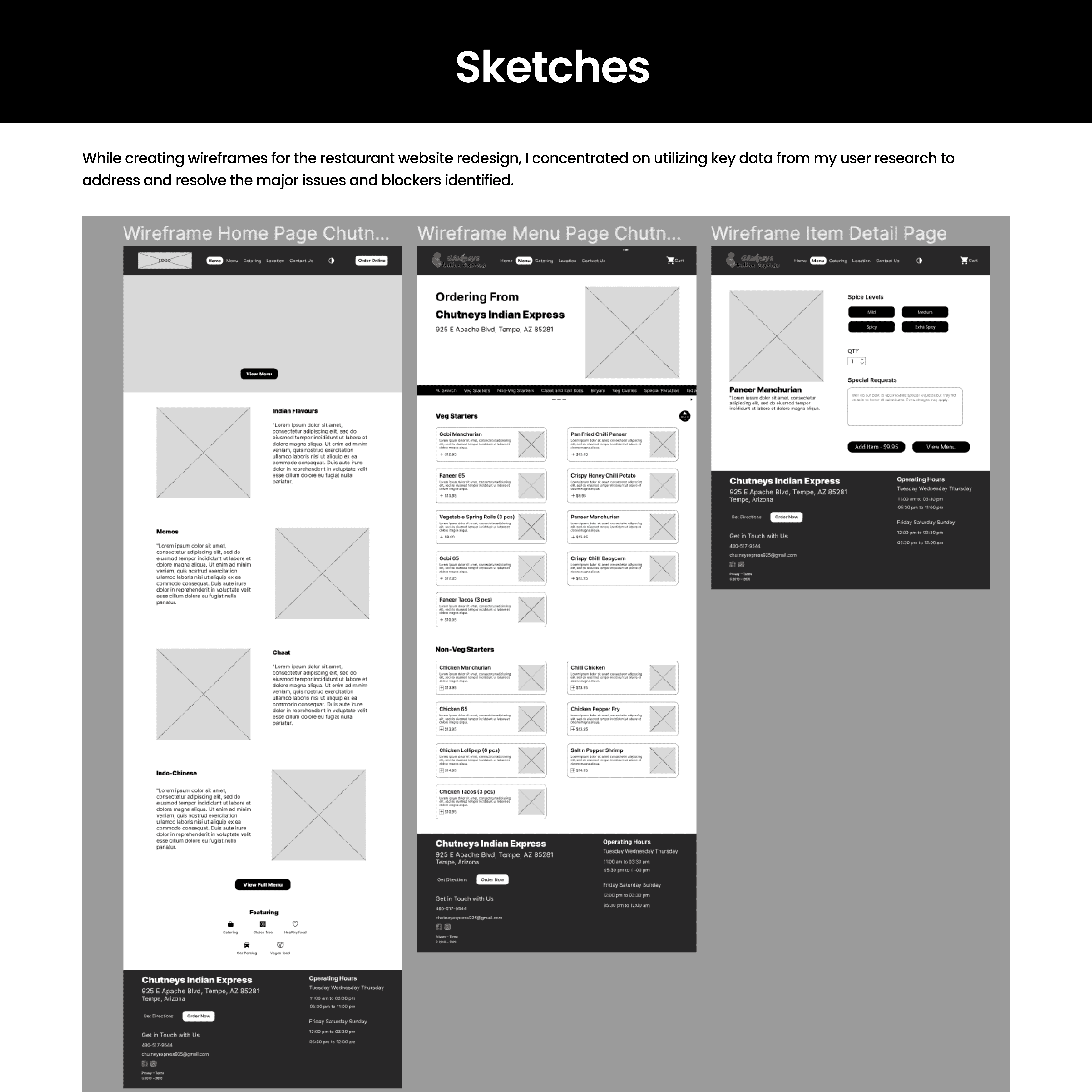 This project focused on redesigning the Chutneys restaurant website to improve usability and make it easier for customers to explore the menu and discover dishes. I began by conducting a heuristic evaluation of the existing website and performing user research to understand how people browse restaurant menus online when deciding what to order. This process helped identify several usability issues, including unclear menu organization, limited dish information, and difficulty locating specific items.