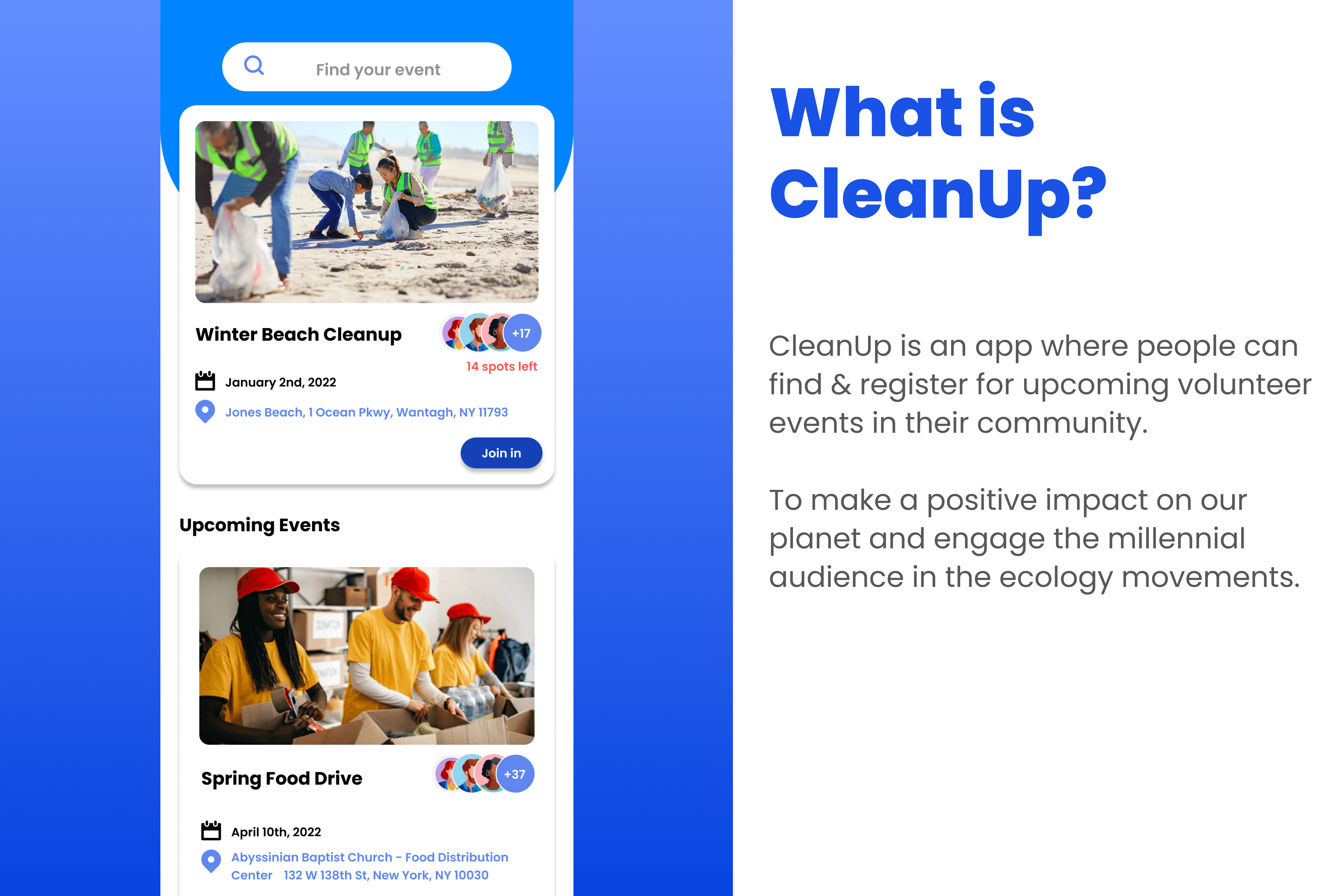 CleanUp is a mobile platform designed to help communities report waste, track cleanup efforts, and improve local environmental conditions. The project focused on understanding how individuals and communities can easily report garbage issues, coordinate cleanup activities, and create awareness around environmental responsibility.