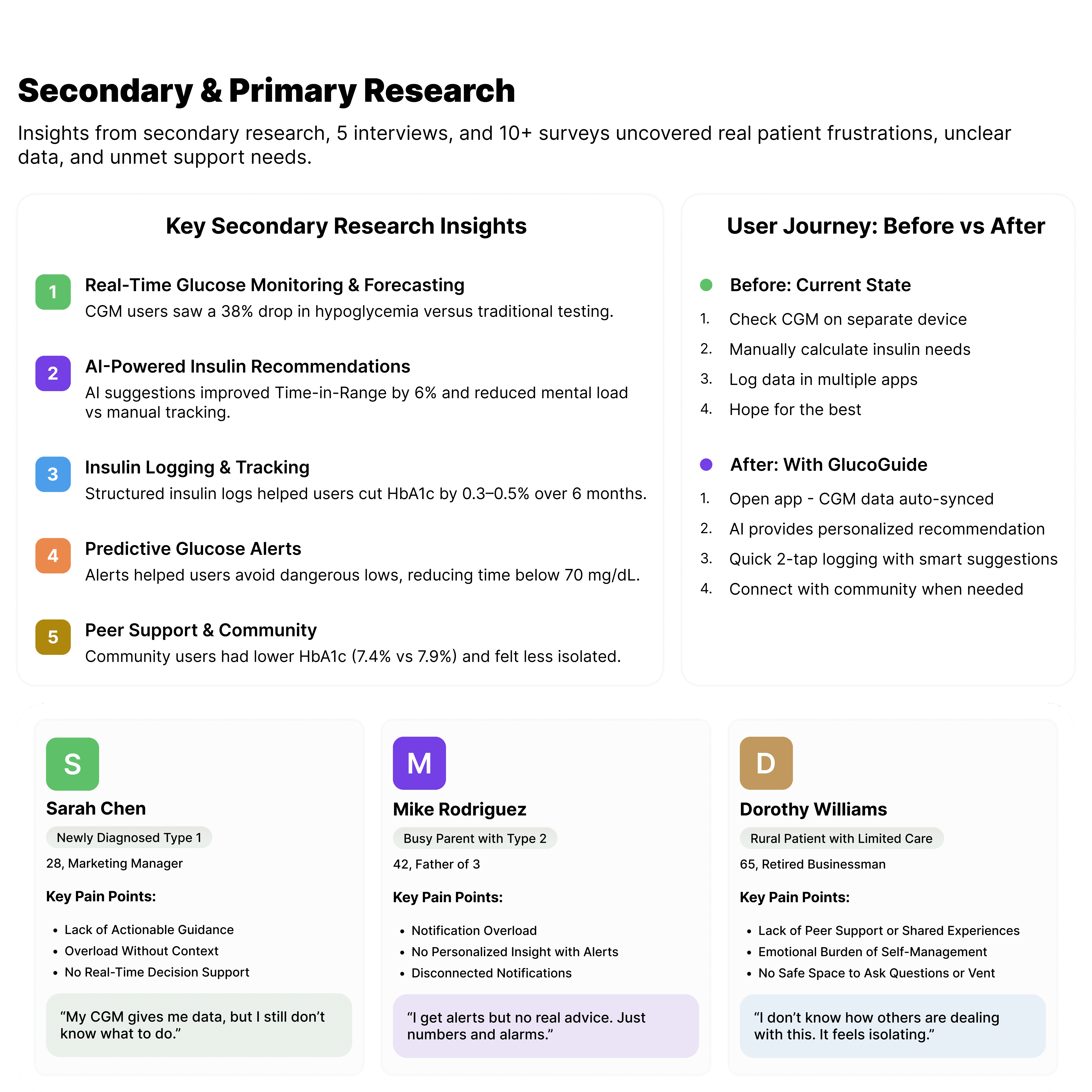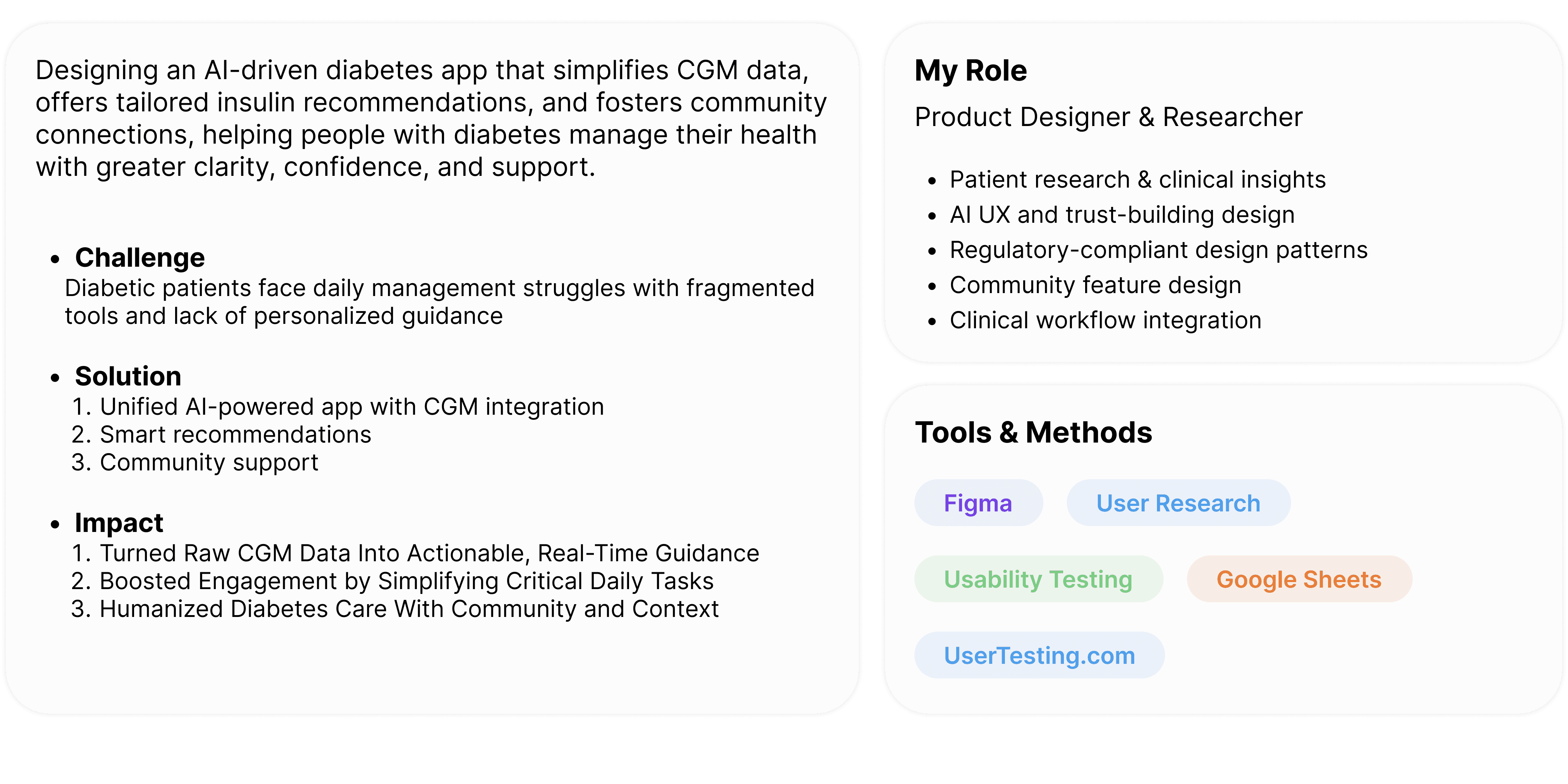 Living with diabetes means you’re always “on.” You wake up thinking about your glucose, plan meals around insulin, adjust for spikes or dips, and manage the constant stress in between. It’s not just medical, it’s emotional, mental, and physical all at once. And for many, it’s a lonely experience. I built this app to change that. It connects to CGM devices so your data is always current, then uses AI to turn numbers into clear, actionable guidance. It gives smart insulin dose suggestions, shares practical tips that fit into daily life, and brings people together in a safe, supportive community. Because managing diabetes should feel less like a battle you fight alone—and more like having someone in your corner, every step of the way.